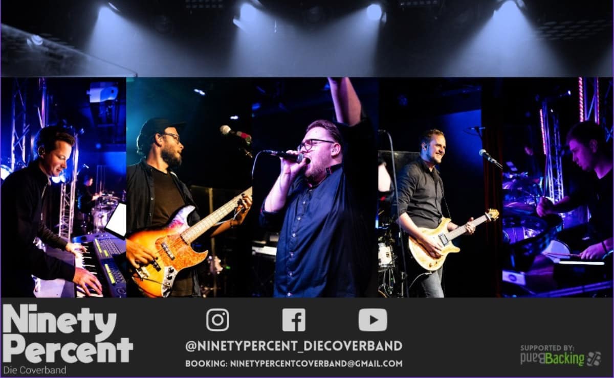 Die fünf Musiker aus dem Vest der „Ninety Percent – Die Coverband “ spielen seit 2020 zusammen und bestehen aus Max Parker (Voc.), Simon Schroer (Git./Voc.), Tim Bartsch (Keys), Philipp Artmann (Bass/Voc.), Christian Regniet (Drums, perc.)