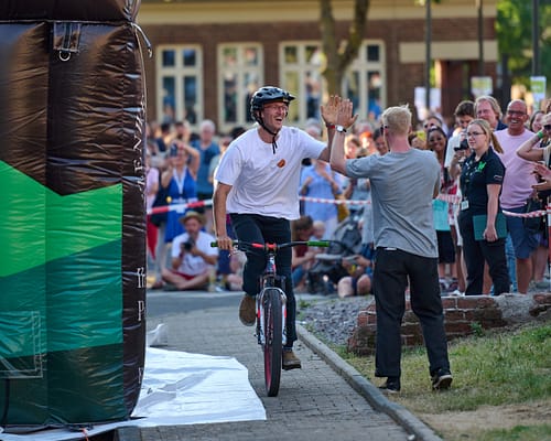 Sportlich, spektakulär wurde es bei der Schanzenshow. Eine extra für die Show errichtete Rampe ließ die Fahrradfahrer durch die Luft schießen. Der Backflip war dabei nur eine der mitreißenden Trickvarianten. Mit einer sprühenden Tanzshow zog UpToDance das Publikum in den Bann, von Hip bis Hop, von Urban bis Classic, von Exotic bis Show – eine rasante Reise voller Poesie, Lebensfreude und Phantasie.