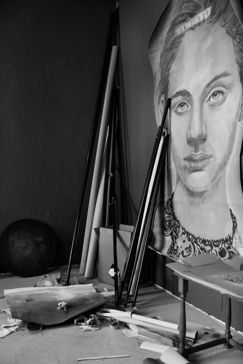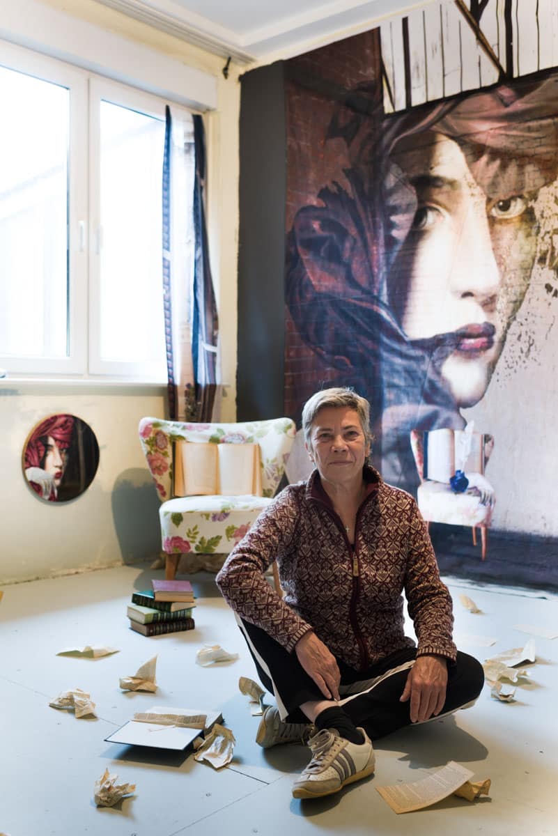 Sinn macht das nicht, darum beschloss ich, ihn einzubeziehen und eine Geschichte erzählen zu lassen. Sie fließt von den Wänden und der Decke auf den Boden. Spuren der ehemaligen Bewohner werden verdeckt, an anderer Stelle kann man sie erahnen. Es sind gute Geister, die jetzt den Raum erobert haben.“